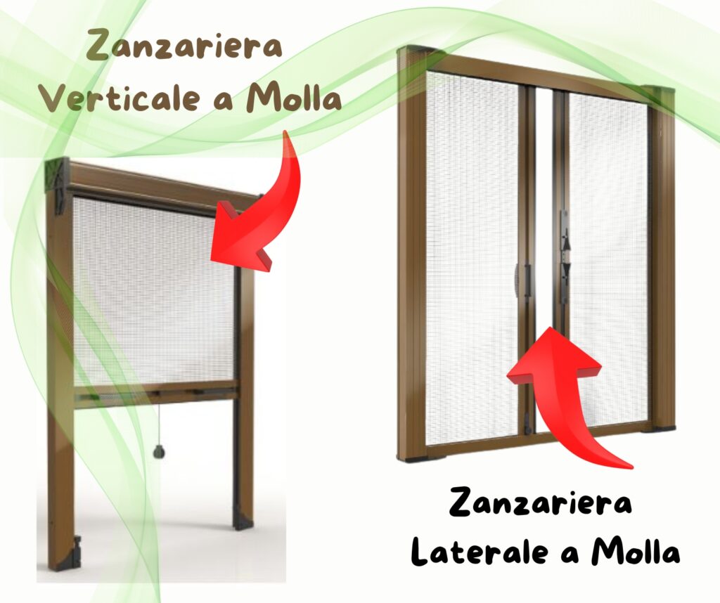 Il catalogo aziendale comprende anche modelli di zanzariere per finestre e per portefinestre, dotate di movimentazione a molla o movimentazione con frizione.
